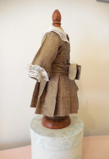 Adorable pure silk dupion and lace dress for antique doll 15 inches see measurements